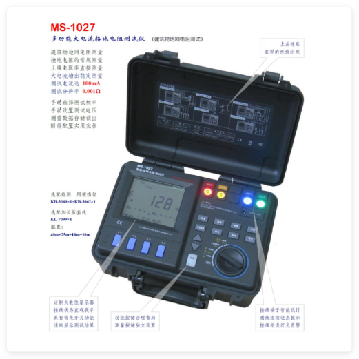 MS-1027大電流建筑物地網(wǎng)電阻測試儀由微控制器芯片控制,主要用于土壤電阻率測量和接地電阻測量